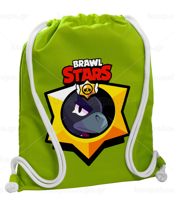 Brawl Stars Crow, Backpack bag GYMBAG LIME GREEN, with pocket (40x48cm) & thick cords