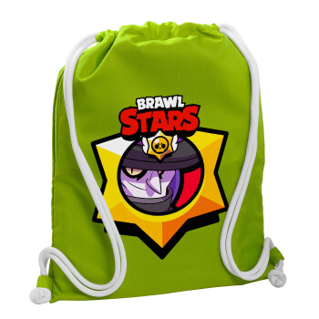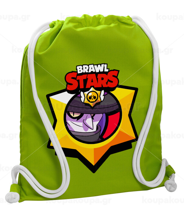 Brawl Stars Mortis, Backpack bag GYMBAG LIME GREEN, with pocket (40x48cm) & thick cords