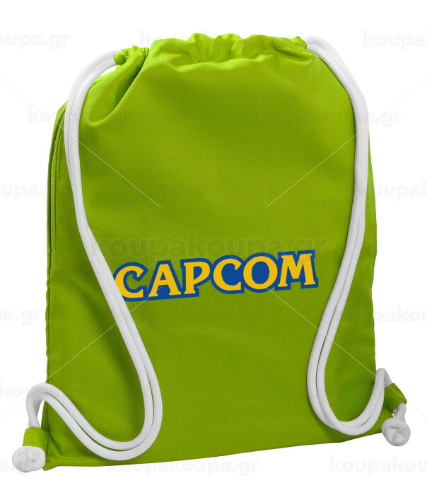Capcom, Backpack bag GYMBAG LIME GREEN, with pocket (40x48cm) & thick cords