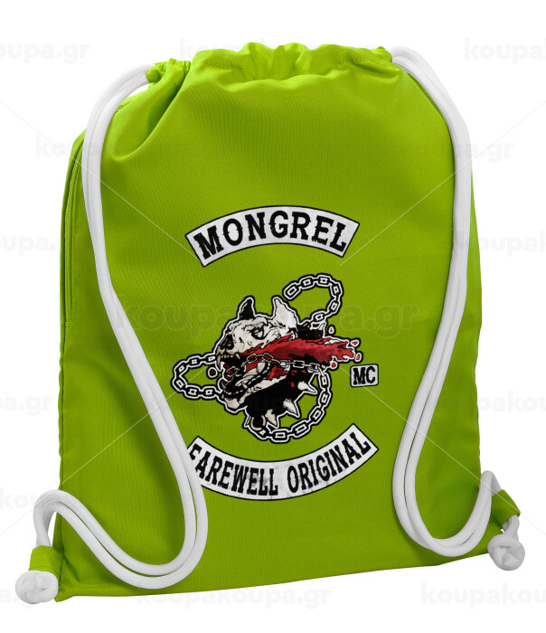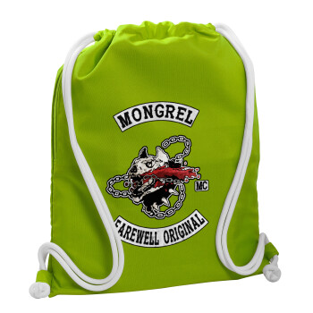 Day's Gone, mongrel farewell original, Backpack bag GYMBAG LIME GREEN, with pocket (40x48cm) & thick cords