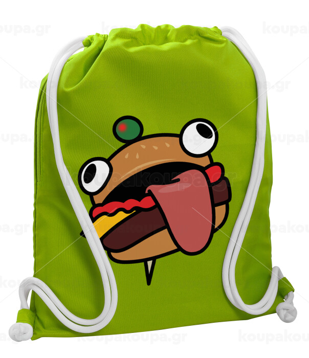 Fortnite Durr Burger, Backpack bag GYMBAG LIME GREEN, with pocket (40x48cm) & thick cords