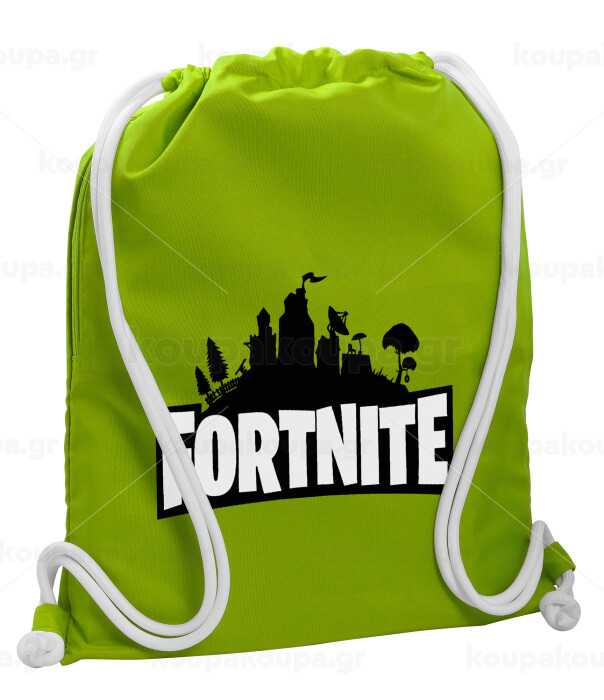 Fortnite, Backpack bag GYMBAG LIME GREEN, with pocket (40x48cm) & thick cords
