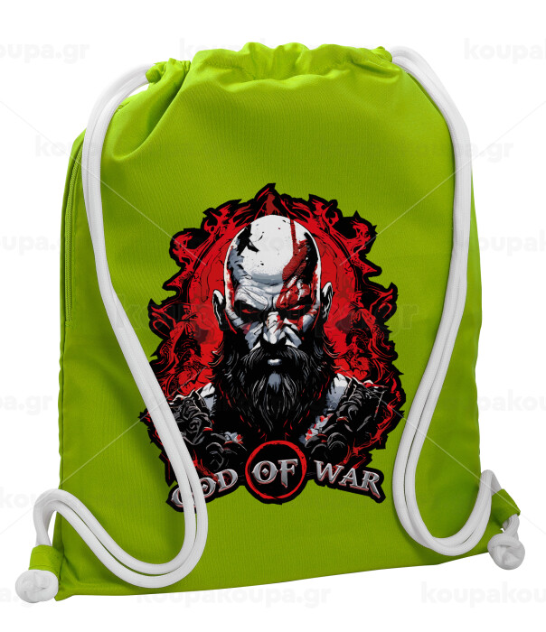 God of war, Backpack bag GYMBAG LIME GREEN, with pocket (40x48cm) & thick cords
