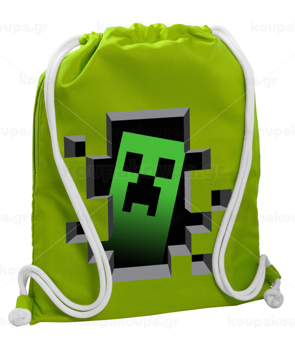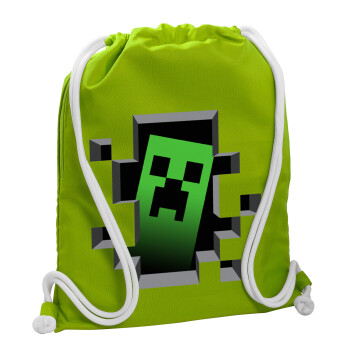 Minecraft creeper, Backpack bag GYMBAG LIME GREEN, with pocket (40x48cm) & thick cords