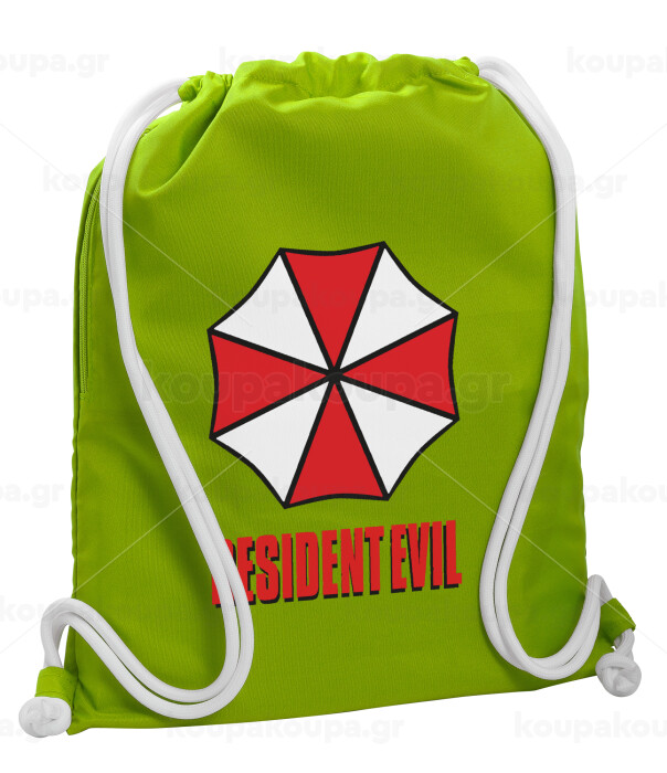 Resident Evil, Backpack bag GYMBAG LIME GREEN, with pocket (40x48cm) & thick cords