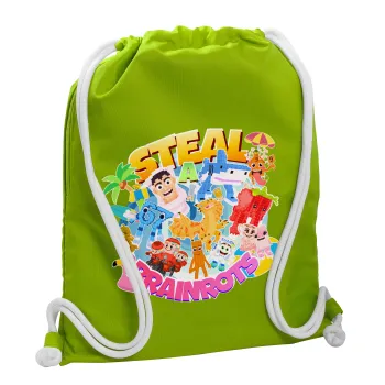 Roblox Steal a Brainrot, Backpack bag GYMBAG LIME GREEN, with pocket (40x48cm) & thick cords