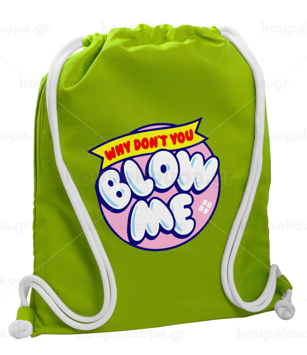 Why Don't You Blow Me Funny, Backpack bag GYMBAG LIME GREEN, with pocket (40x48cm) & thick cords