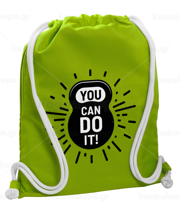 You can do it, Backpack bag GYMBAG LIME GREEN, with pocket (40x48cm) & thick cords