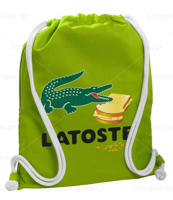 Latoste, Backpack bag GYMBAG LIME GREEN, with pocket (40x48cm) & thick cords