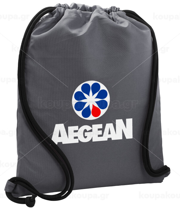 Πρατήριο καυσίμων AEGEAN, Backpack pouch GYMBAG GREY, with pocket (40x48cm) & thick cords