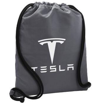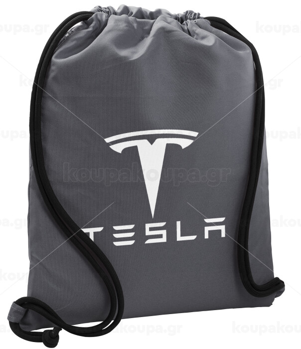 Tesla motors, Backpack pouch GYMBAG GREY, with pocket (40x48cm) & thick cords