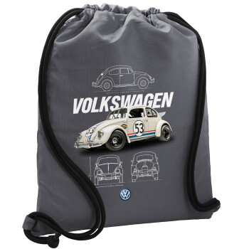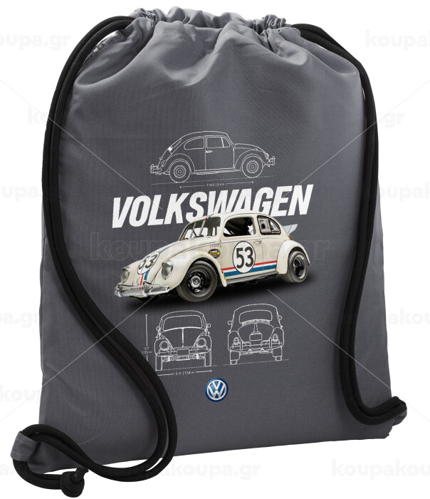 Volkswagen Beetle, Backpack pouch GYMBAG GREY, with pocket (40x48cm) & thick cords