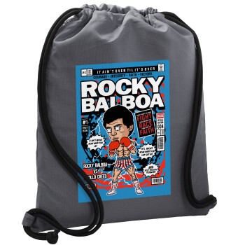 Rocky Balboa, Backpack pouch GYMBAG GREY, with pocket (40x48cm) & thick cords