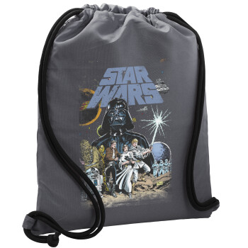 Star Wars, Backpack pouch GYMBAG GREY, with pocket (40x48cm) & thick cords