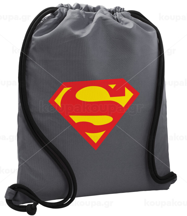 Superman, Backpack pouch GYMBAG GREY, with pocket (40x48cm) & thick cords
