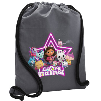 Gabby Dollhouse, Backpack pouch GYMBAG GREY, with pocket (40x48cm) & thick cords