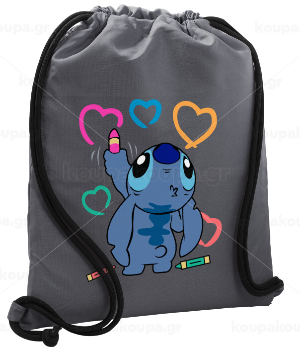 Lilo & Stitch painting, Backpack pouch GYMBAG GREY, with pocket (40x48cm) & thick cords