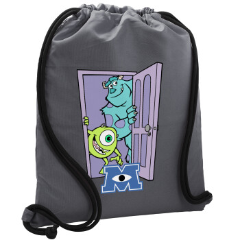 Monster inc, Backpack pouch GYMBAG GREY, with pocket (40x48cm) & thick cords