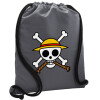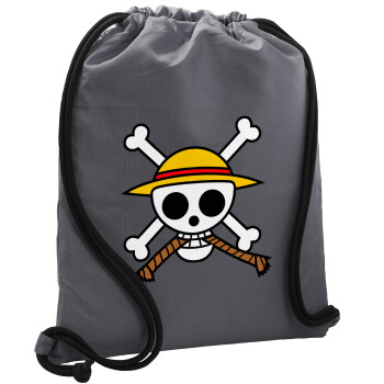 Onepiece skull, Backpack pouch GYMBAG GREY, with pocket (40x48cm) & thick cords
