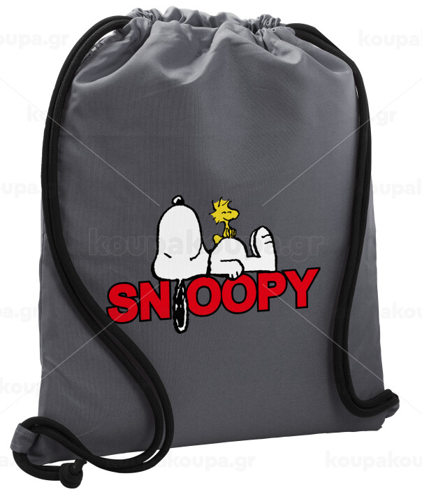 Snoopy sleep, Backpack pouch GYMBAG GREY, with pocket (40x48cm) & thick cords