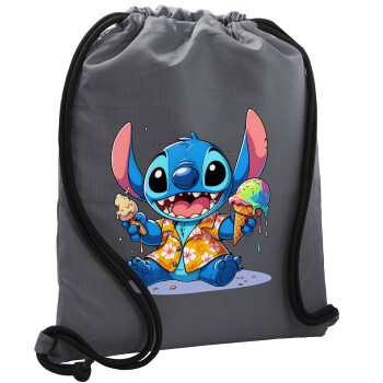 Stitch Ice cream, Backpack pouch GYMBAG GREY, with pocket (40x48cm) & thick cords