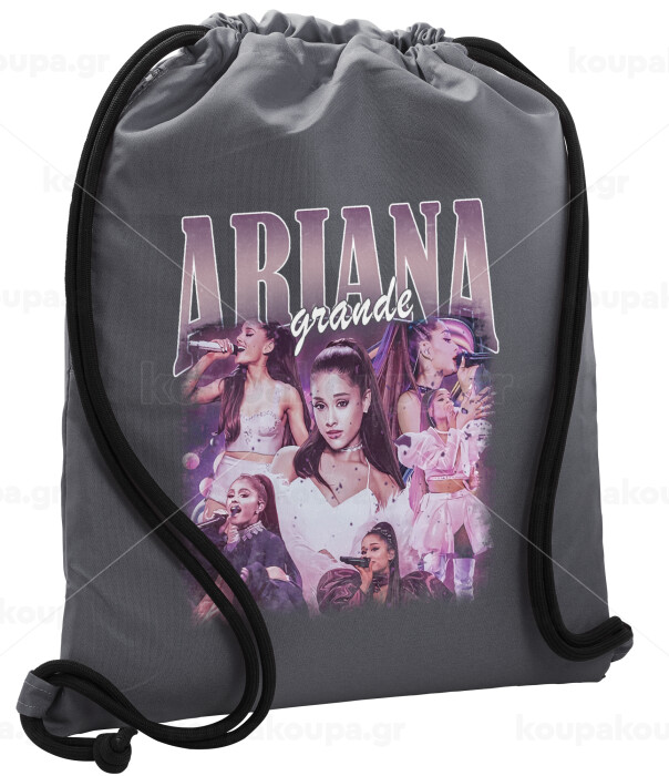 Ariana Grande, Backpack pouch GYMBAG GREY, with pocket (40x48cm) & thick cords