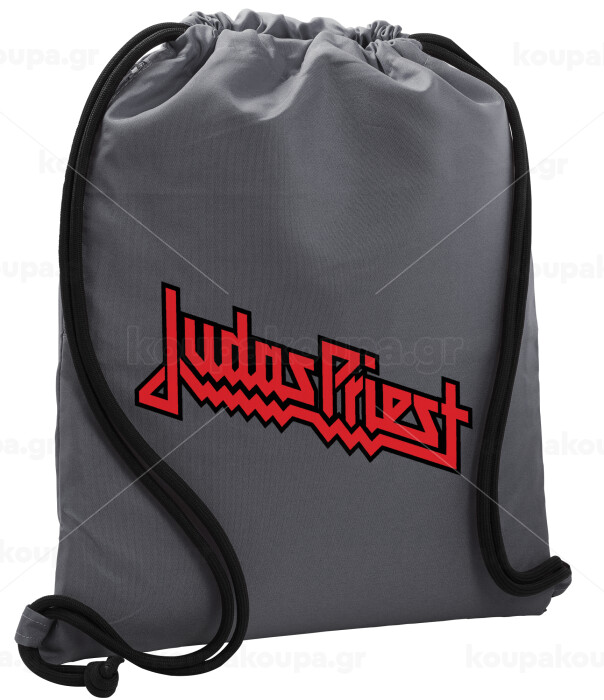 Judas Priest, Backpack pouch GYMBAG GREY, with pocket (40x48cm) & thick cords