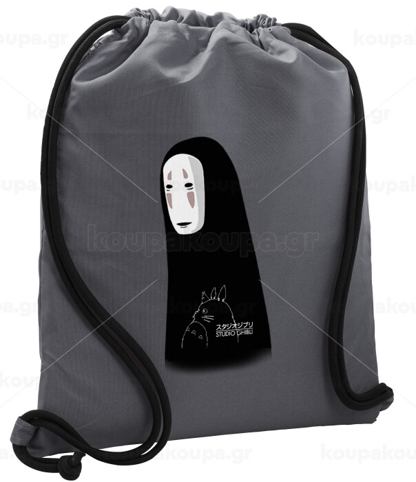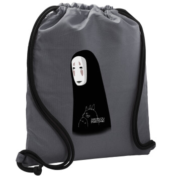 Spirited Away No Face, Backpack pouch GYMBAG GREY, with pocket (40x48cm) & thick cords