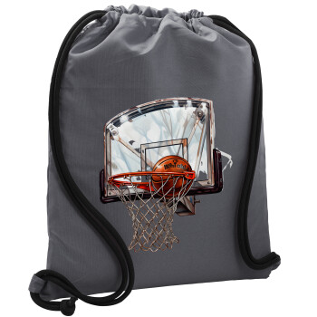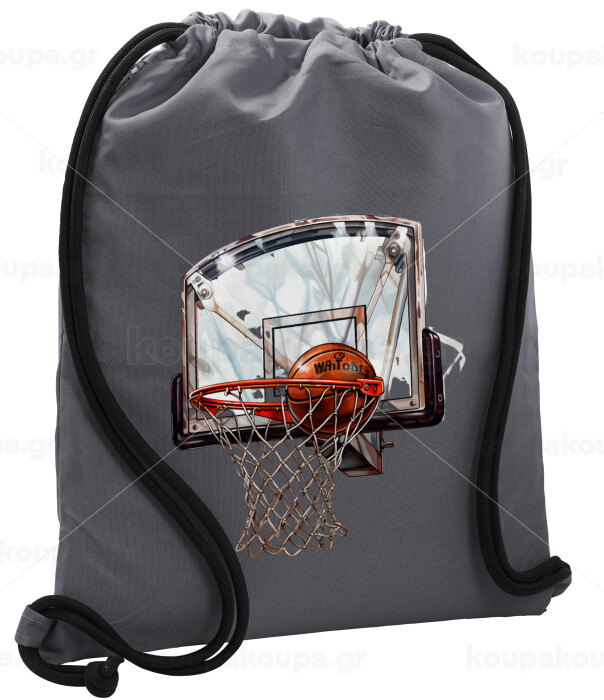 Basketball, Backpack pouch GYMBAG GREY, with pocket (40x48cm) & thick cords