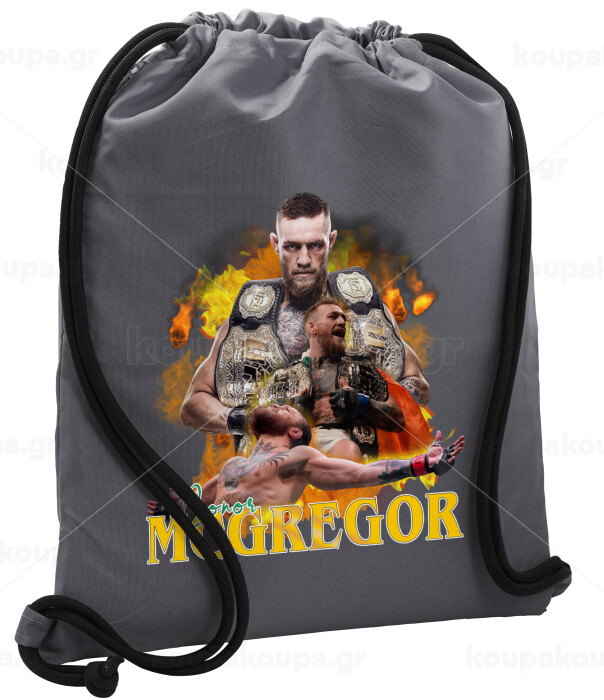 Conor McGregor Notorious, Backpack pouch GYMBAG GREY, with pocket (40x48cm) & thick cords