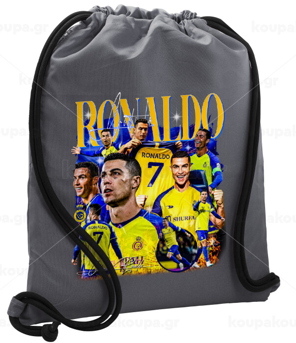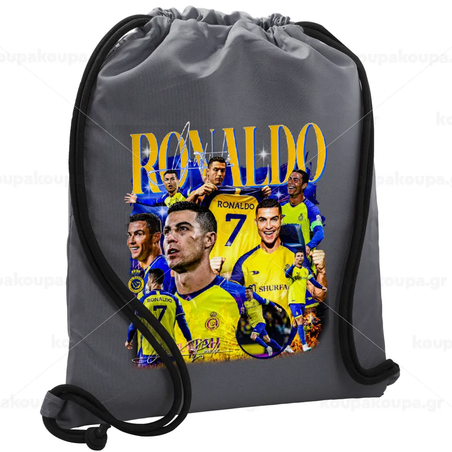 Cristiano Ronaldo Al Nassr, Backpack pouch GYMBAG GREY, with pocket (40x48cm) & thick cords