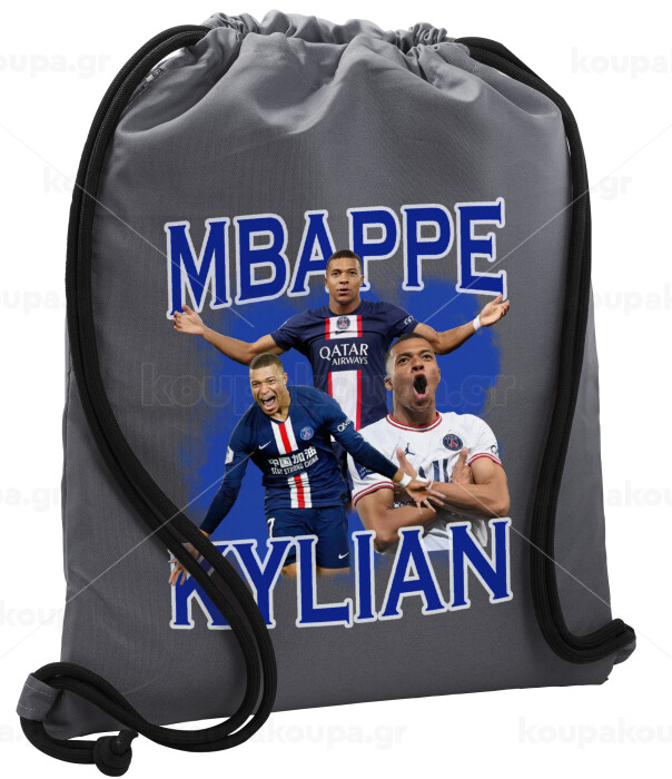 Kylian Mbappé, Backpack pouch GYMBAG GREY, with pocket (40x48cm) & thick cords