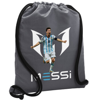 Lionel Messi, Backpack pouch GYMBAG GREY, with pocket (40x48cm) & thick cords