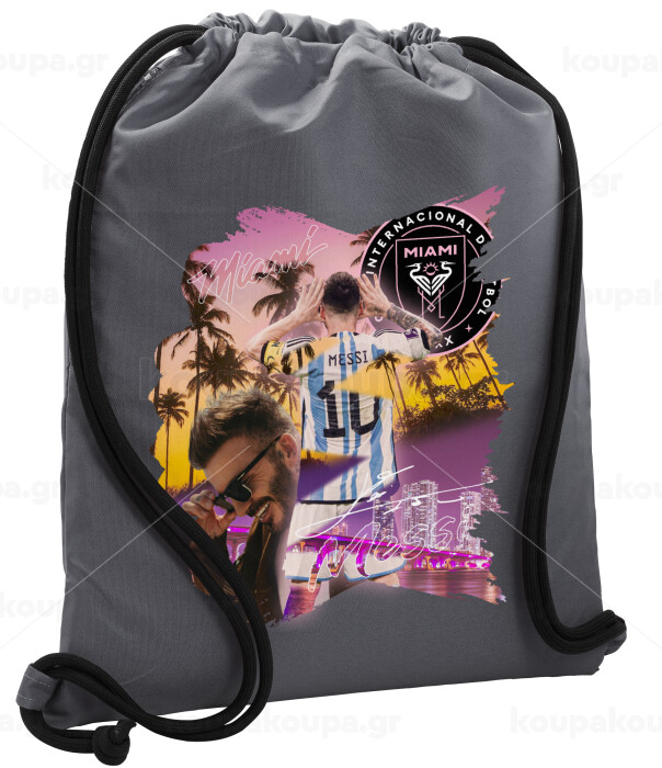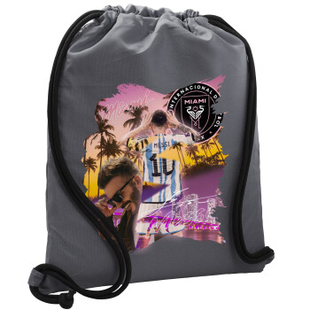 Lionel Messi Miami, Backpack pouch GYMBAG GREY, with pocket (40x48cm) & thick cords