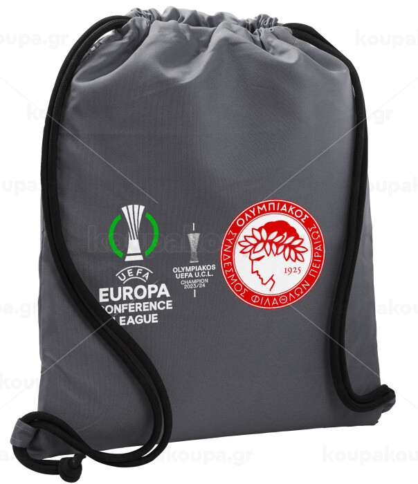 Olympiacos UEFA Europa Conference League Champion 2023/24, Backpack pouch GYMBAG GREY, with pocket (40x48cm) & thick cords