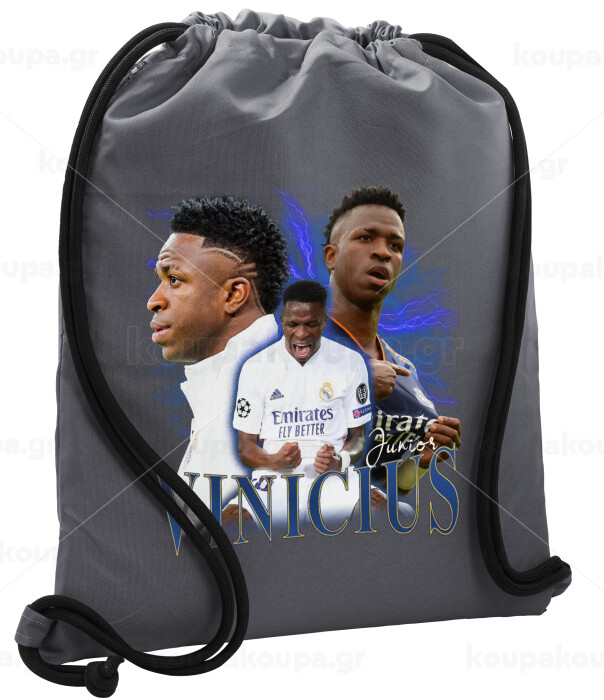 Vinicius Junior, Backpack pouch GYMBAG GREY, with pocket (40x48cm) & thick cords