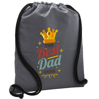 The Best DAD ever, Backpack pouch GYMBAG GREY, with pocket (40x48cm) & thick cords