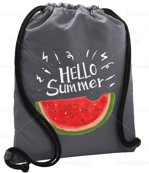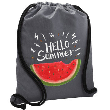 Summer Watermelon, Backpack pouch GYMBAG GREY, with pocket (40x48cm) & thick cords