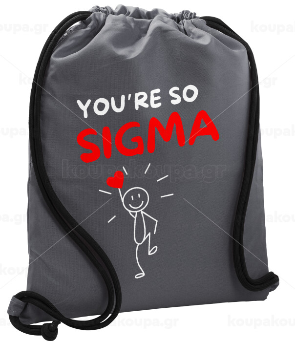 Sigma Valentine's Day , Backpack pouch GYMBAG GREY, with pocket (40x48cm) & thick cords