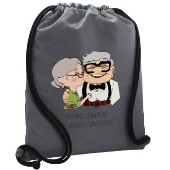 UP, YOU WILL ALWAYS BE MY GREATEST ADVENTURE, Backpack pouch GYMBAG GREY, with pocket (40x48cm) & thick cords