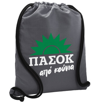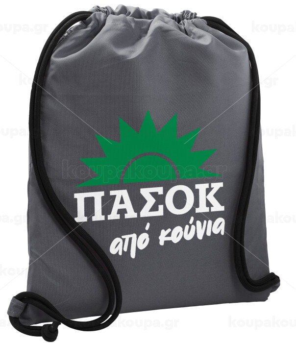 ΠΑΣΟΚ από κούνια, Backpack pouch GYMBAG GREY, with pocket (40x48cm) & thick cords