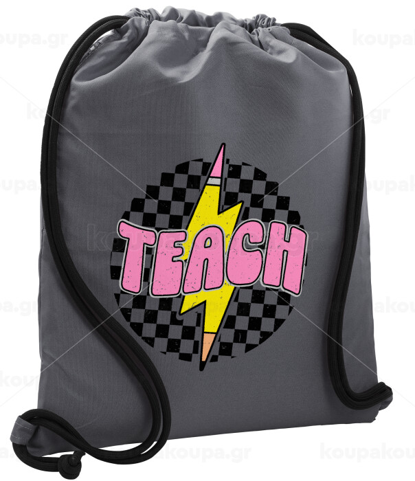 Teach, Backpack pouch GYMBAG GREY, with pocket (40x48cm) & thick cords