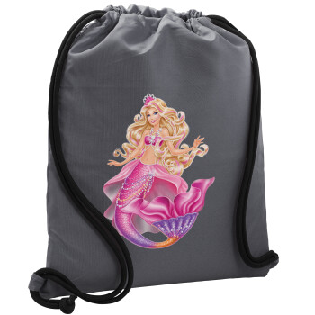 Barbie mermaid blue, Backpack pouch GYMBAG GREY, with pocket (40x48cm) & thick cords