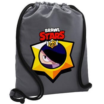 Brawl Stars Edgar, Backpack pouch GYMBAG GREY, with pocket (40x48cm) & thick cords