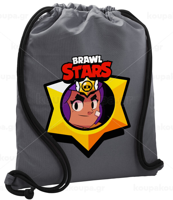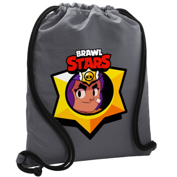 Brawl Stars Shelly, Backpack pouch GYMBAG GREY, with pocket (40x48cm) & thick cords