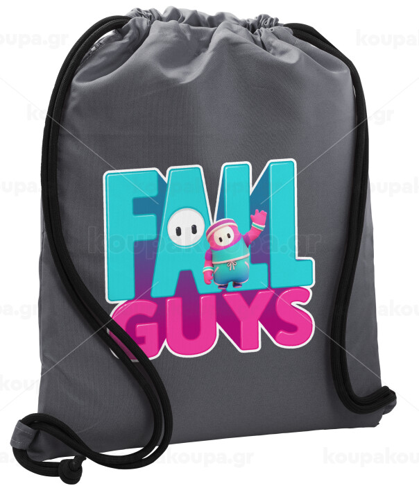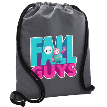 FALL GUYS, Backpack pouch GYMBAG GREY, with pocket (40x48cm) & thick cords