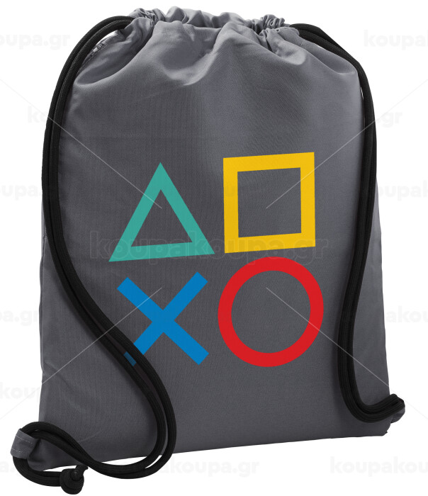 Gaming Symbols, Backpack pouch GYMBAG GREY, with pocket (40x48cm) & thick cords