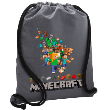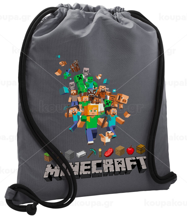 Minecraft adventure, Backpack pouch GYMBAG GREY, with pocket (40x48cm) & thick cords