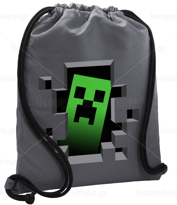 Minecraft creeper, Backpack pouch GYMBAG GREY, with pocket (40x48cm) & thick cords