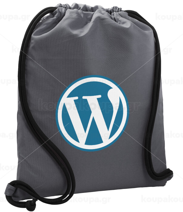 Wordpress, Backpack pouch GYMBAG GREY, with pocket (40x48cm) & thick cords